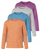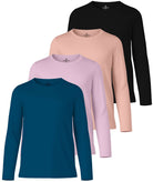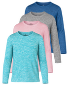 4 Pack: Girls Dry-Fit Long Sleeve Active Crew Neck T-Shirt
