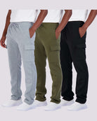3 Pack: Mens Fleece Cargo Open Bottom Sweatpants