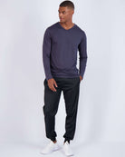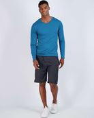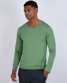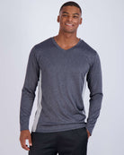 - Designed for a comfortable experience. V-neck provides a nonrestrictive fit; Long-sleeve allows for a wider range of motion