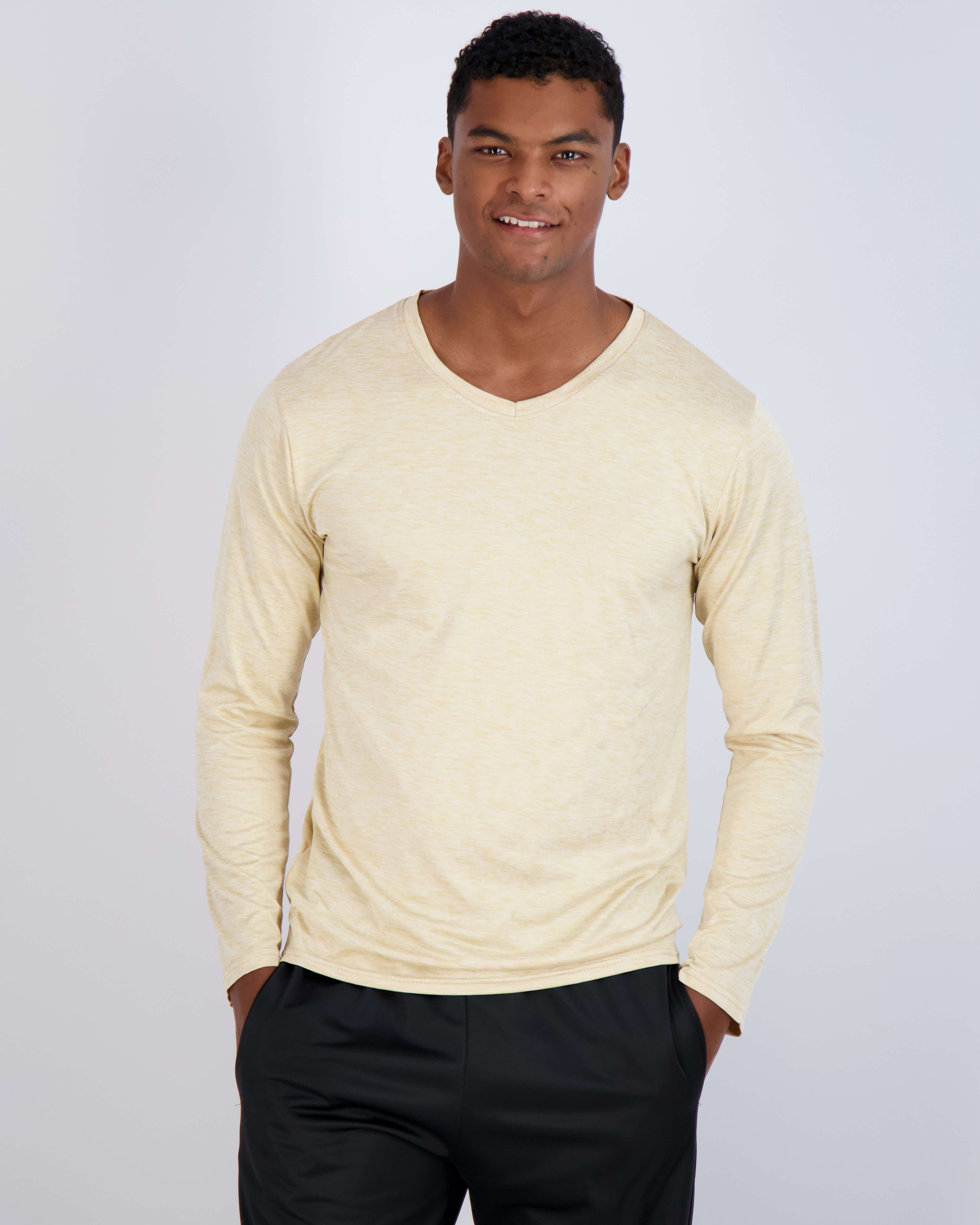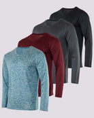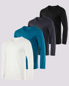 4 Pack: Mens V-Neck Long Sleeve Dry Fit T-Shirt