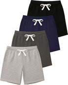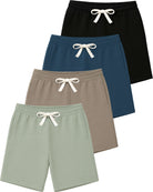 Real Essentials 4 Pack: Boys' Cotton French Terry Shorts with Pockets for Kids Teens Youth - Sleep Casual Lounge (4-18)
