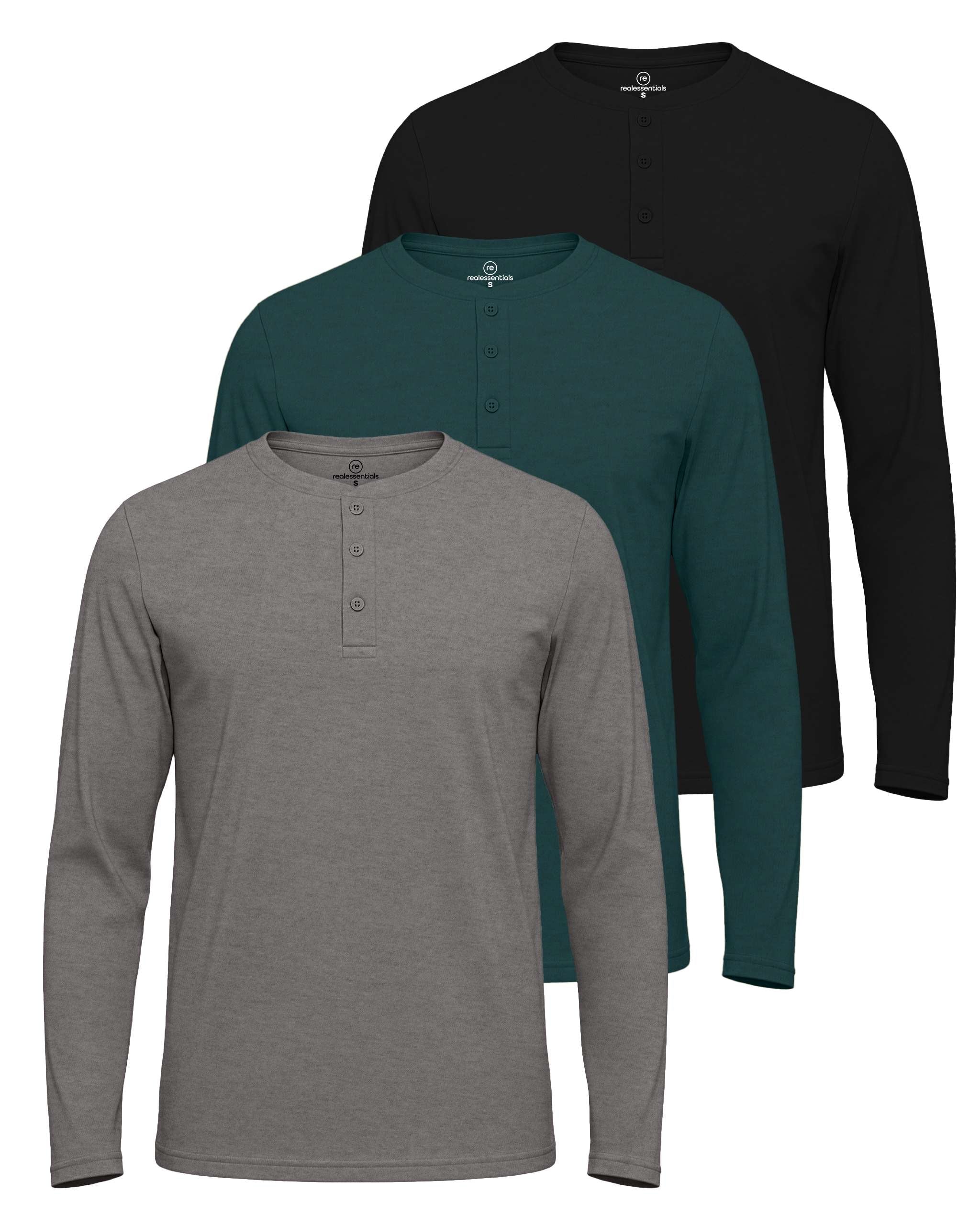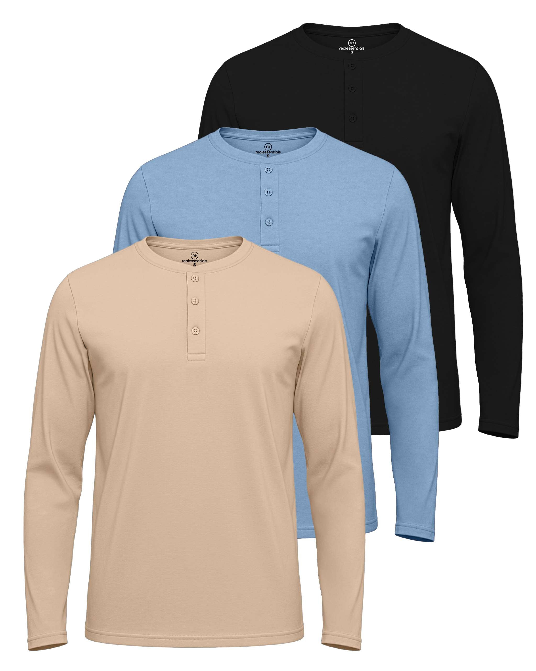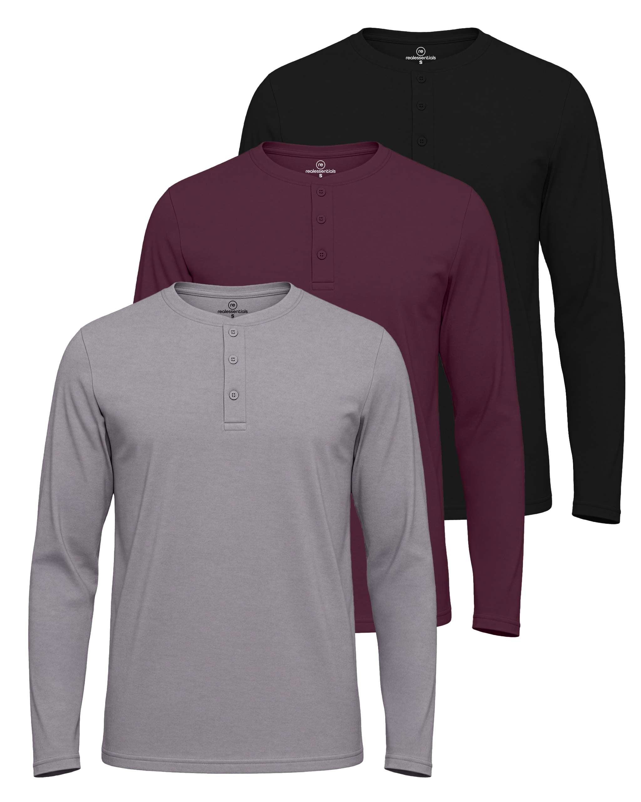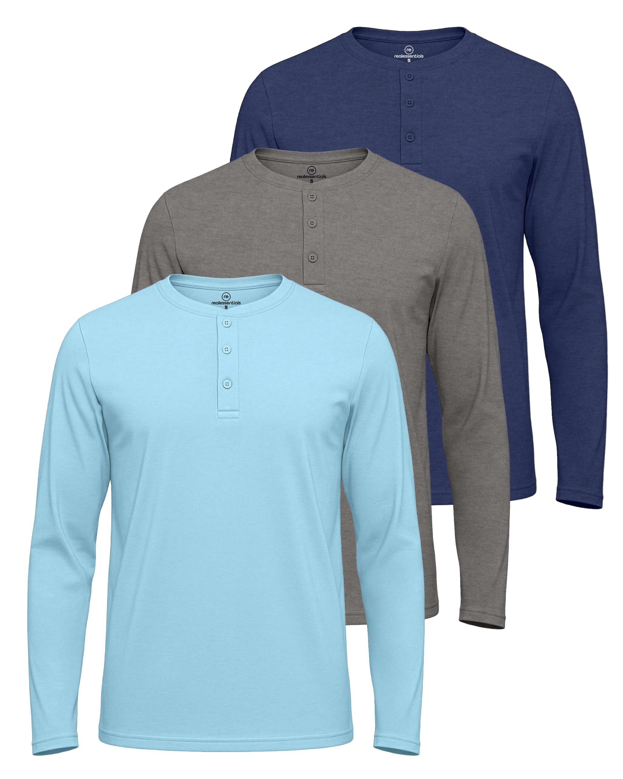 3 Pack: Mens Long Sleeve Cotton Henley T-Shirt