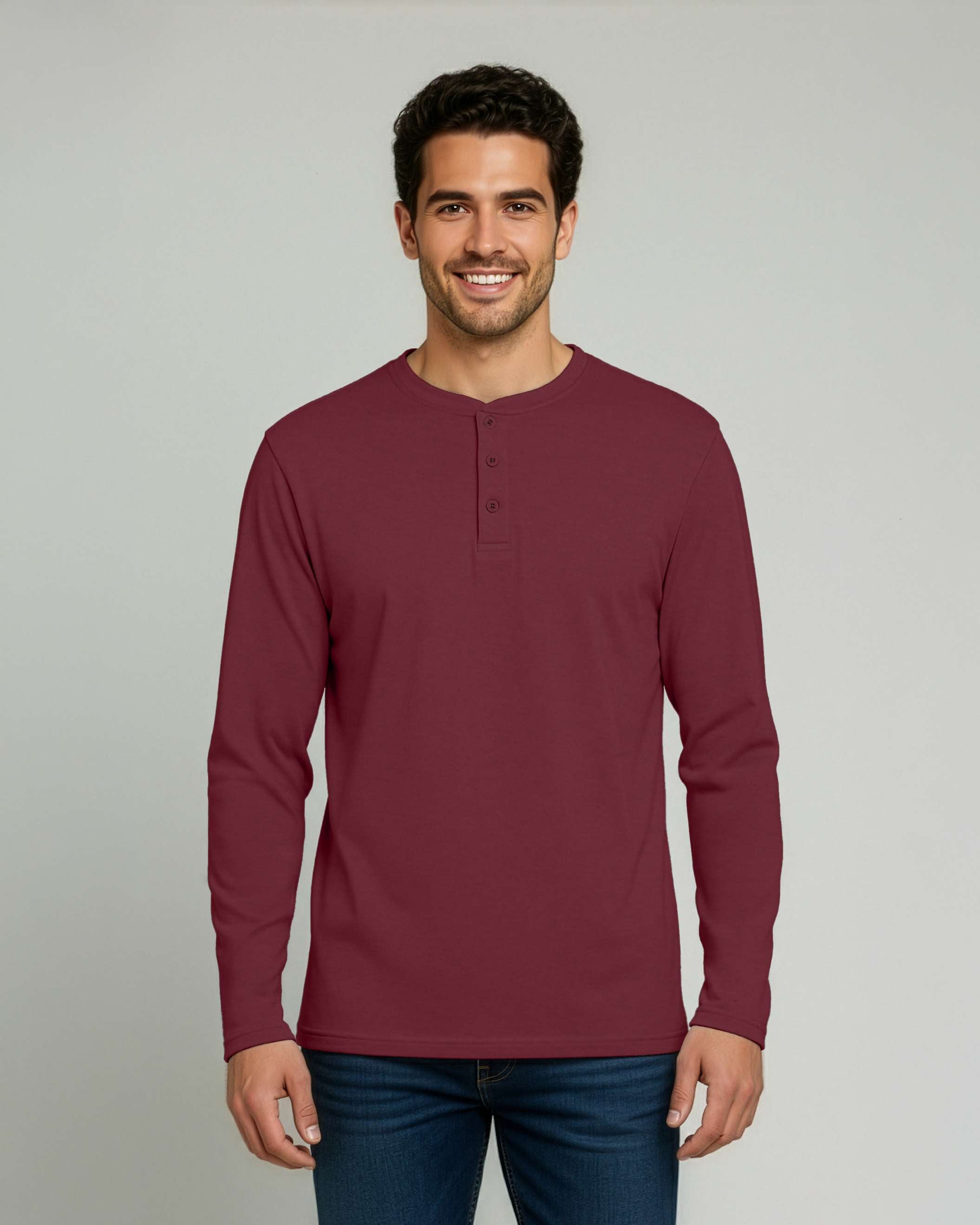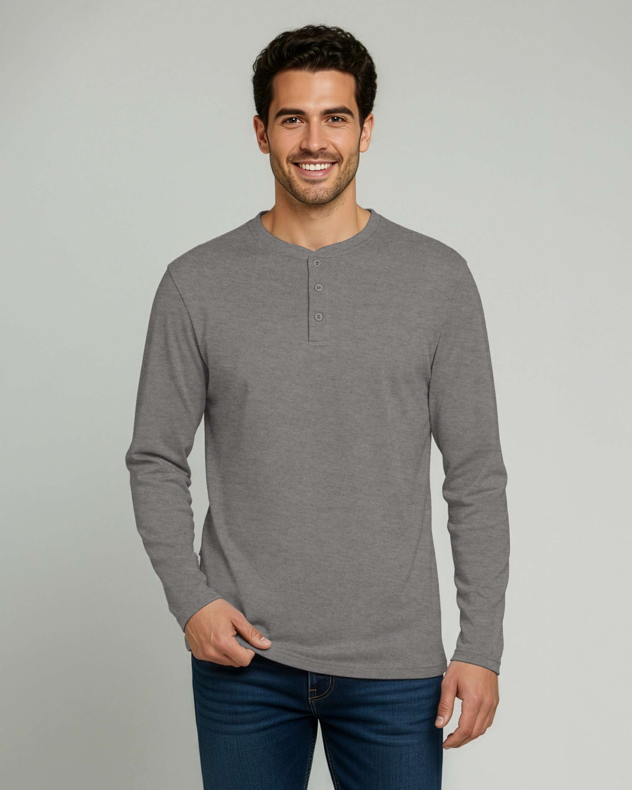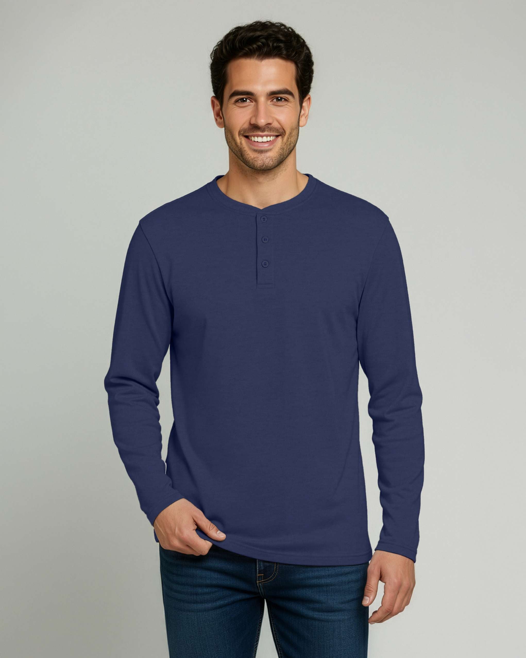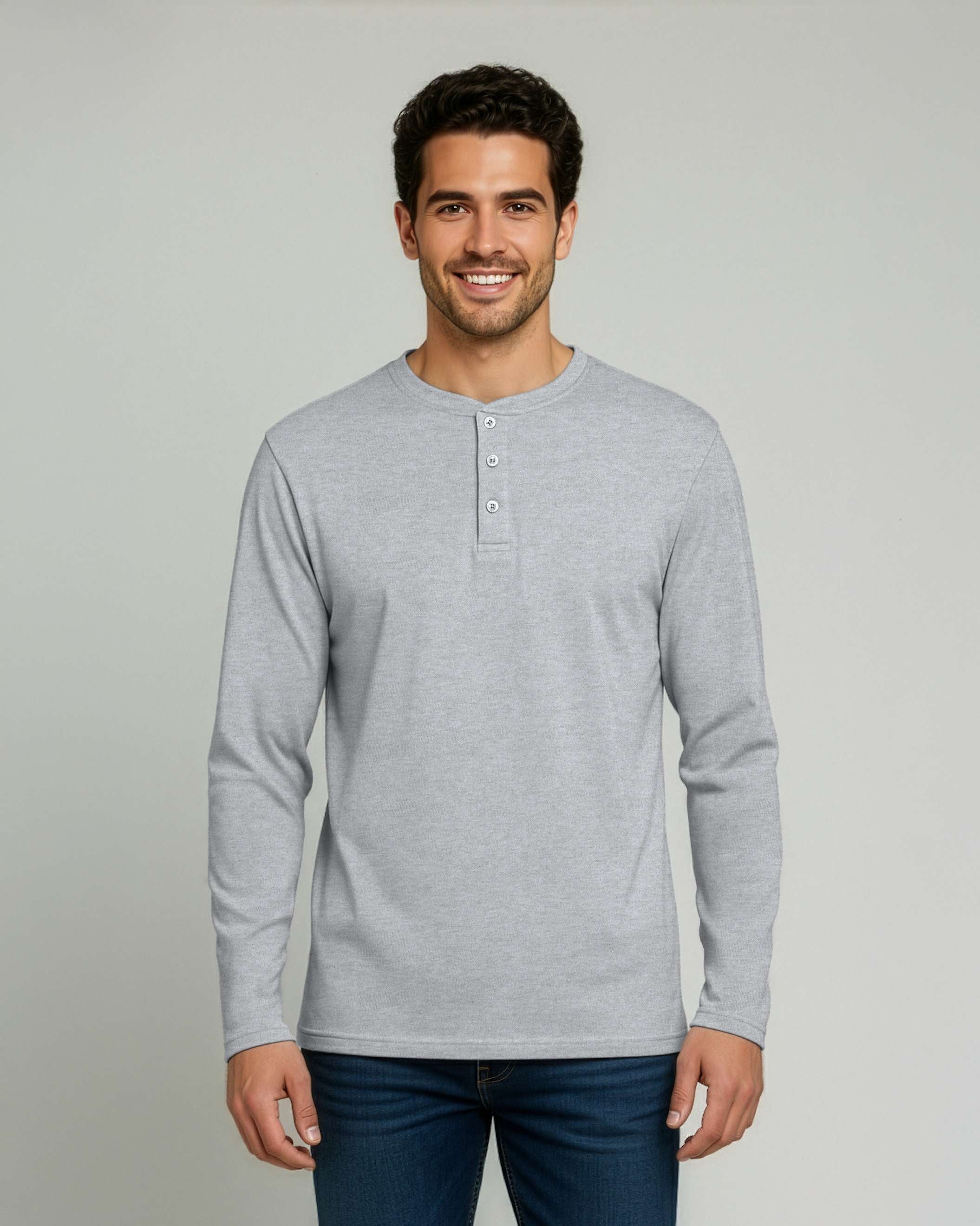 3 Pack: Mens Long Sleeve Cotton Henley T-Shirt
