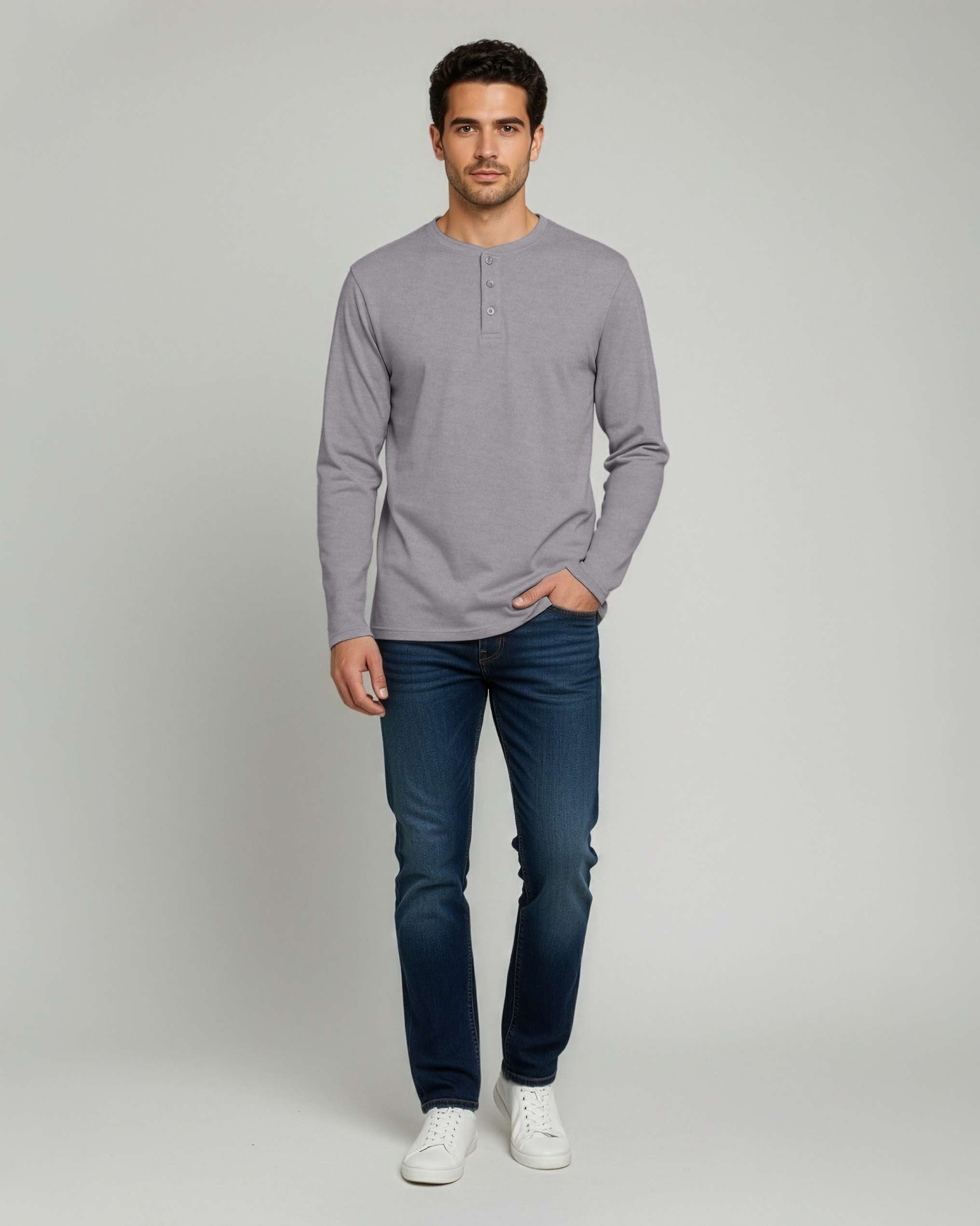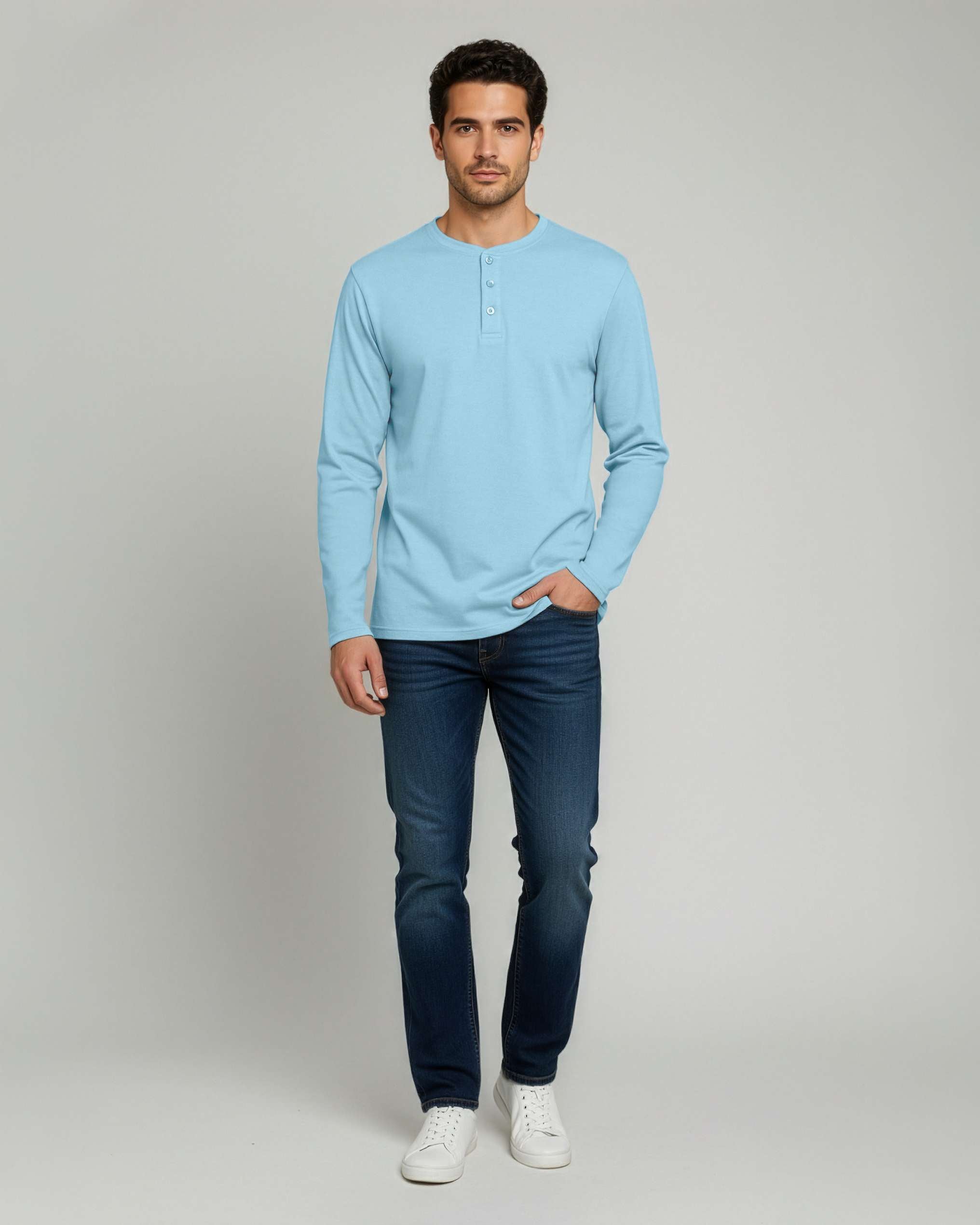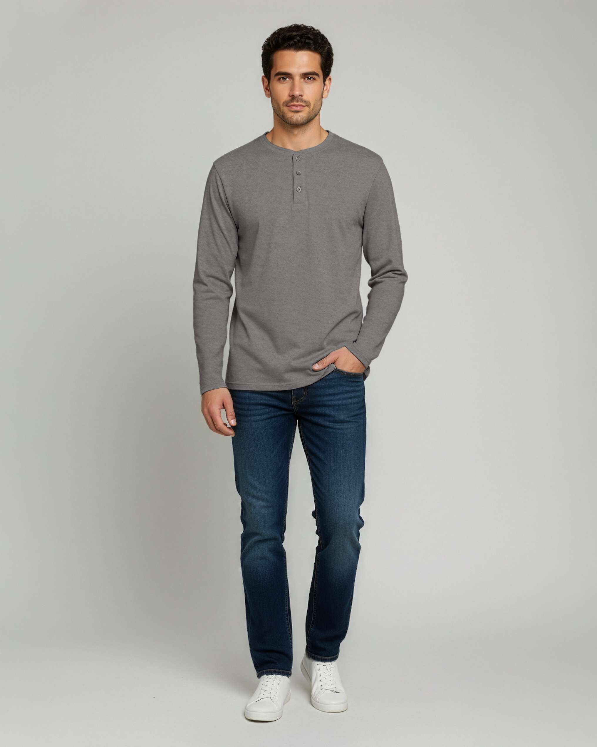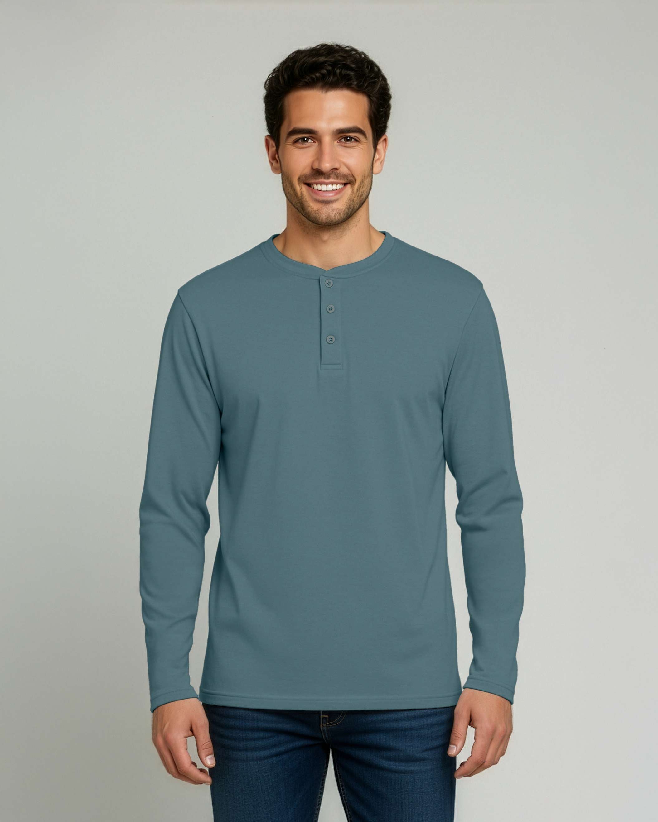 3 Pack: Mens Long Sleeve Cotton Henley T-Shirt
