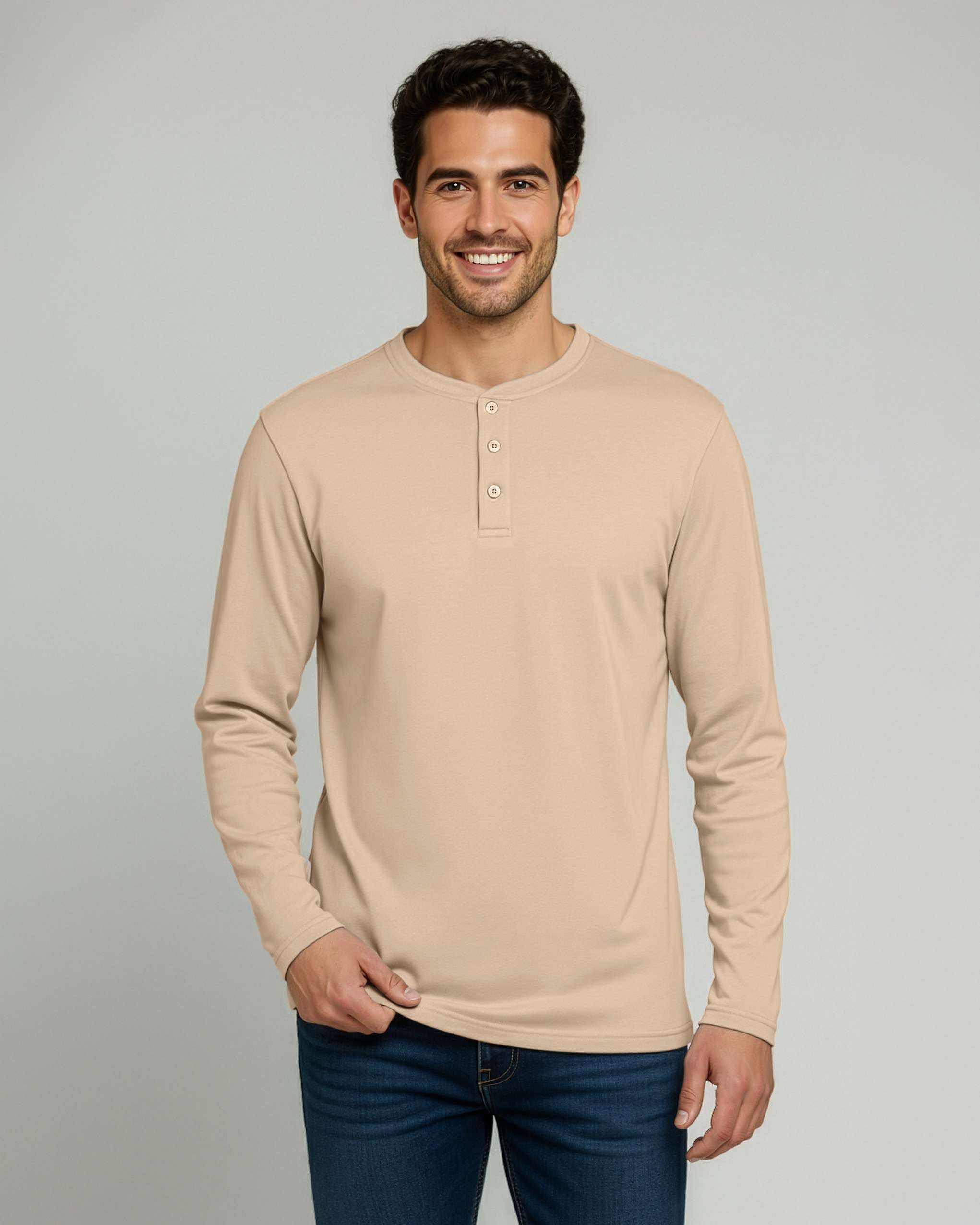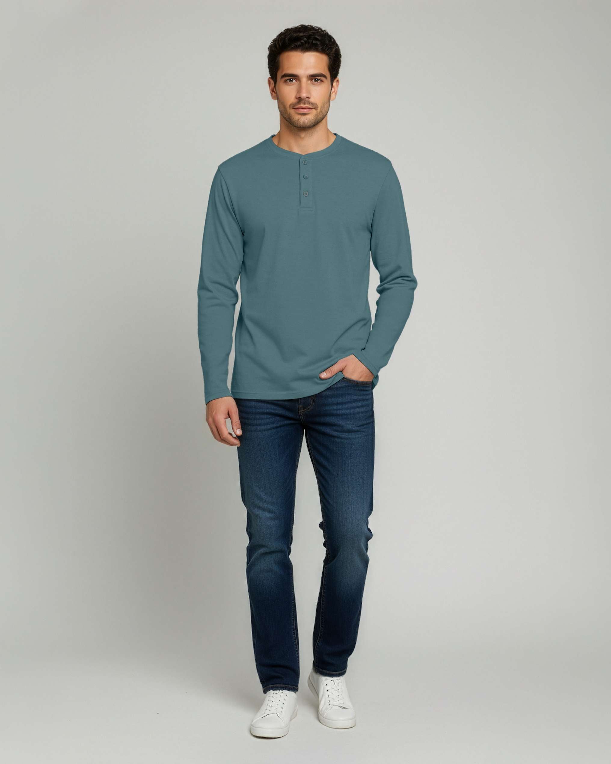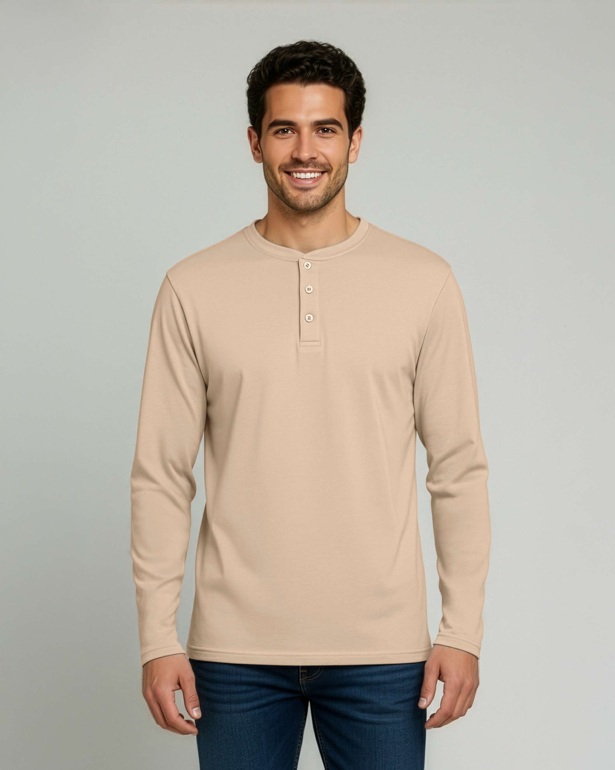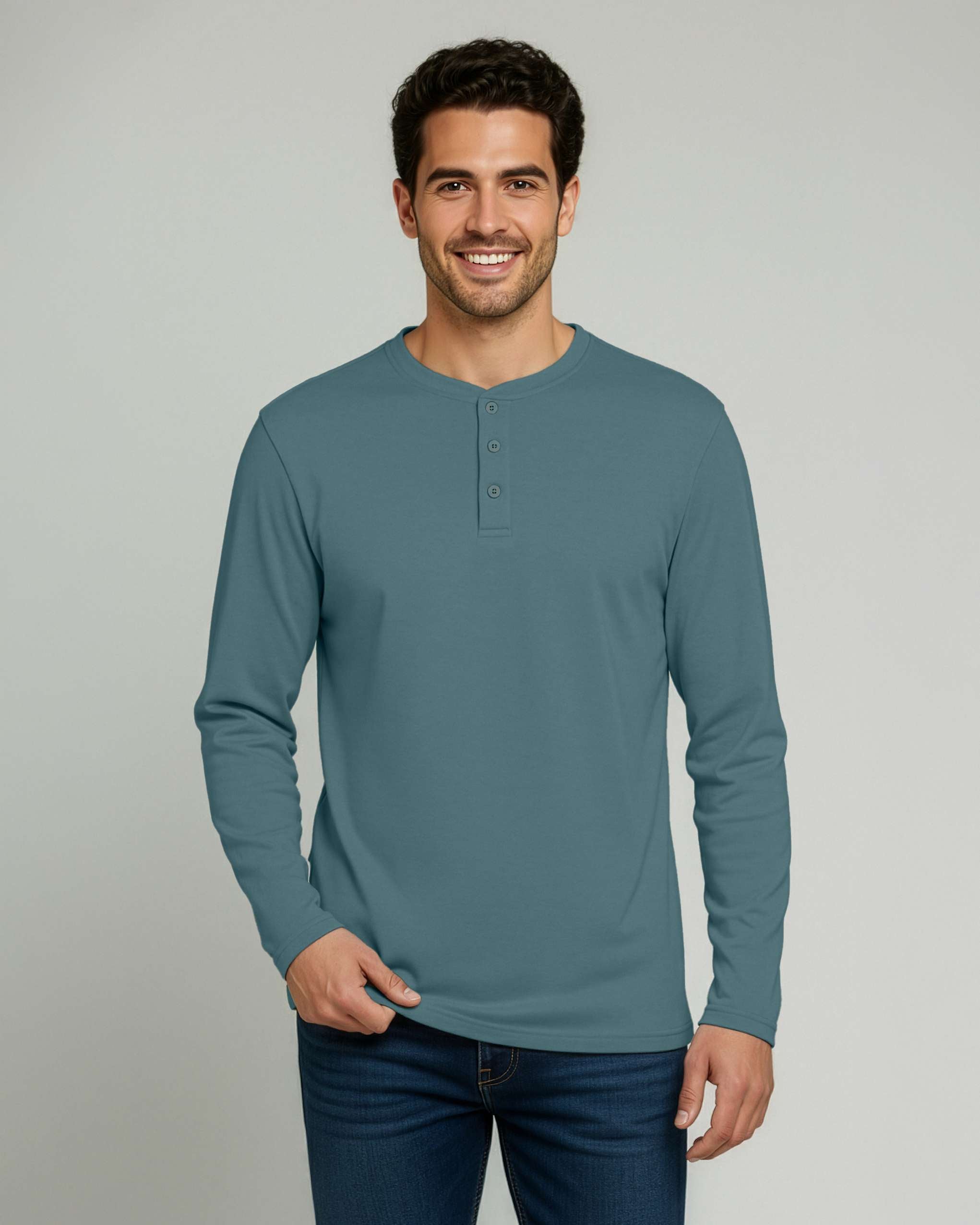 3 Pack: Mens Long Sleeve Cotton Henley T-Shirt