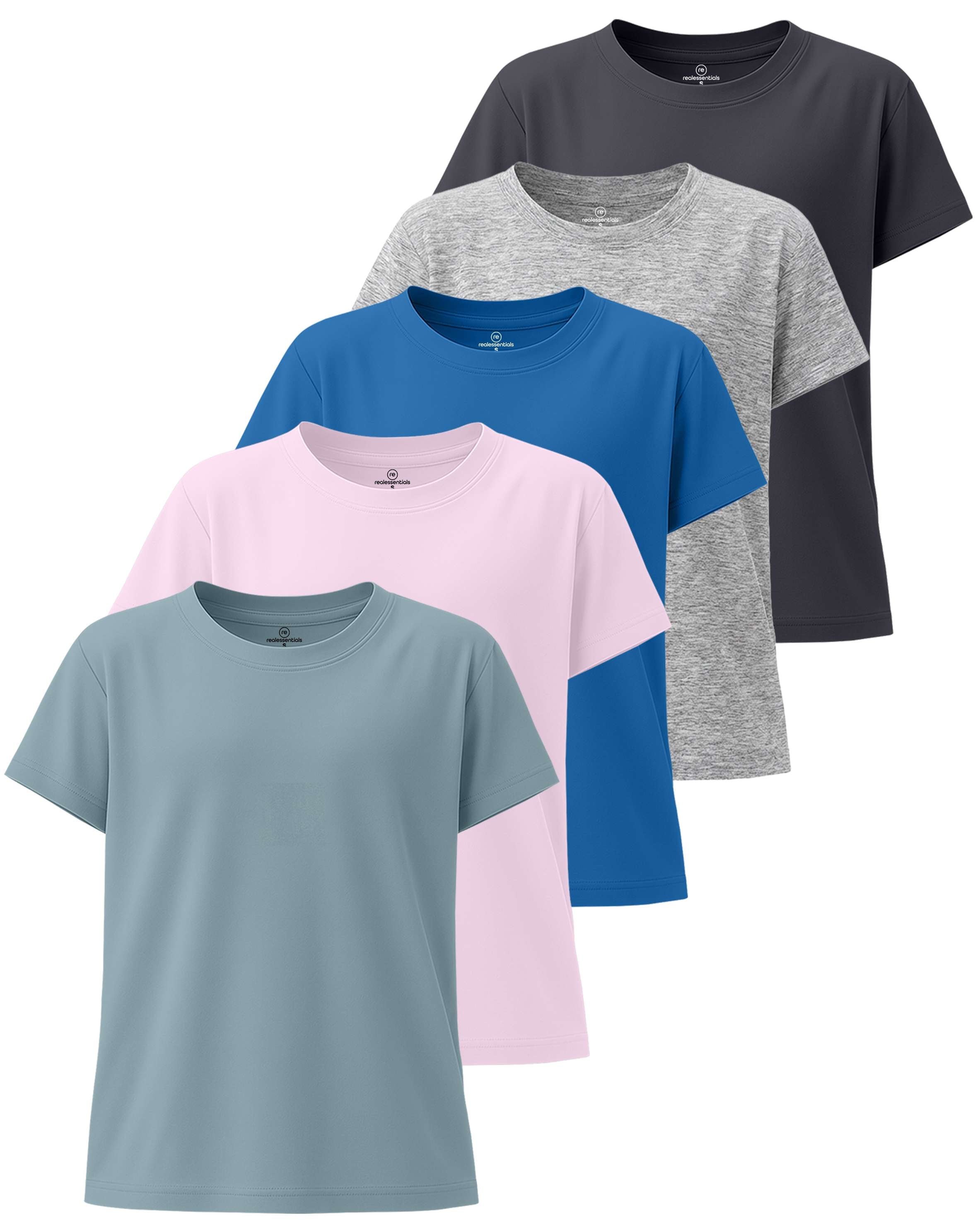 5 Pack: Mens Dry-Fit Active Crew Neck T-Shirt