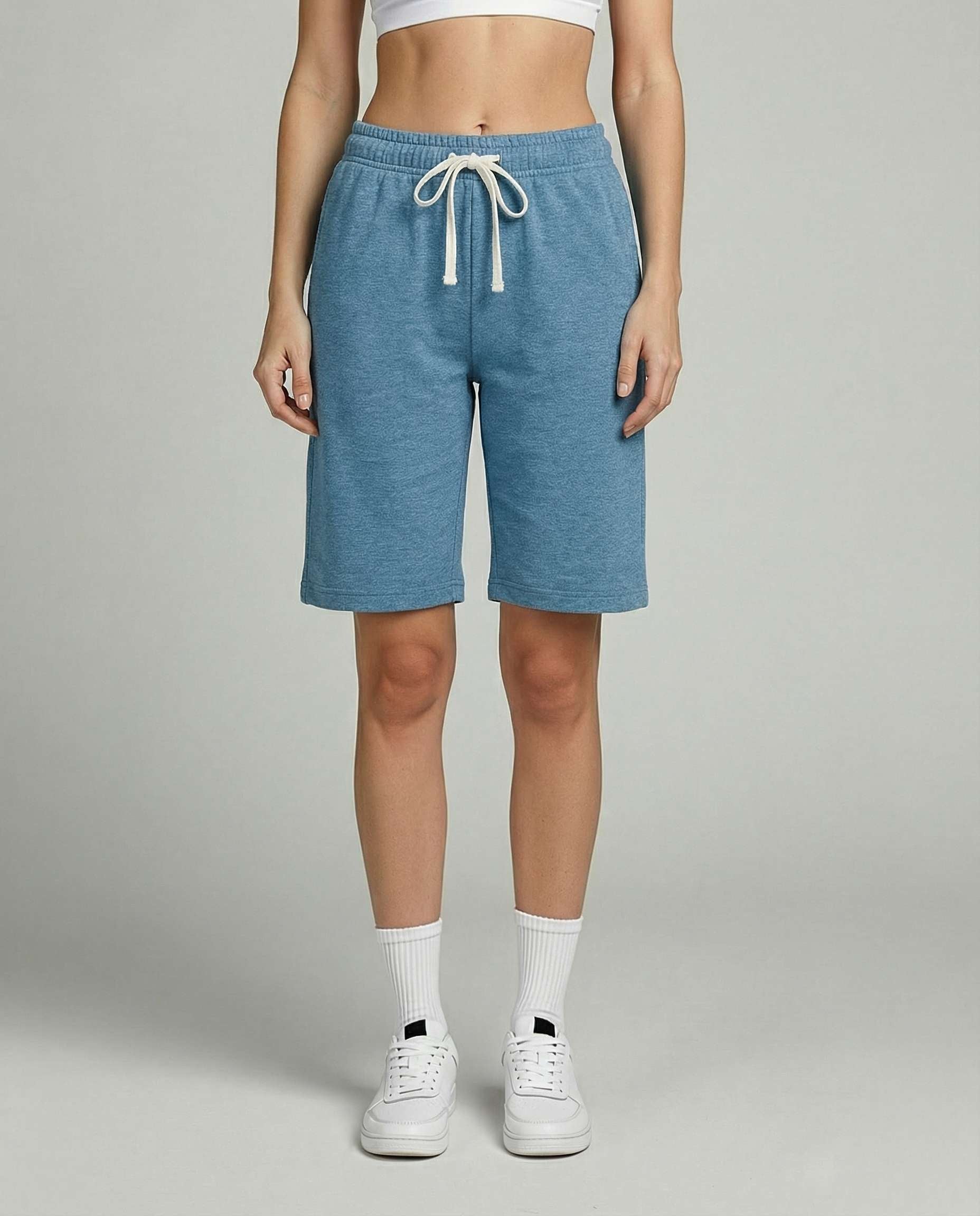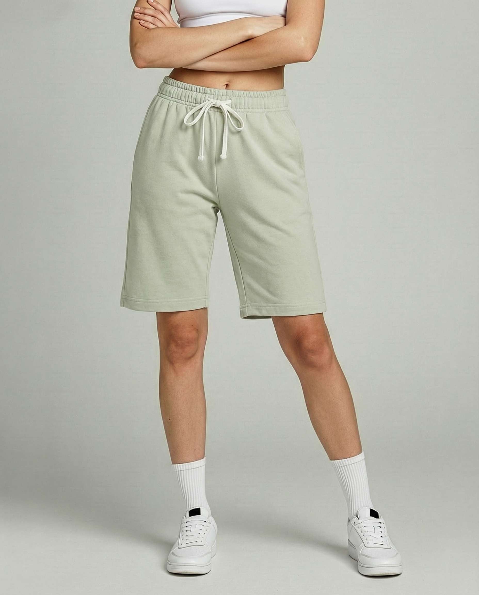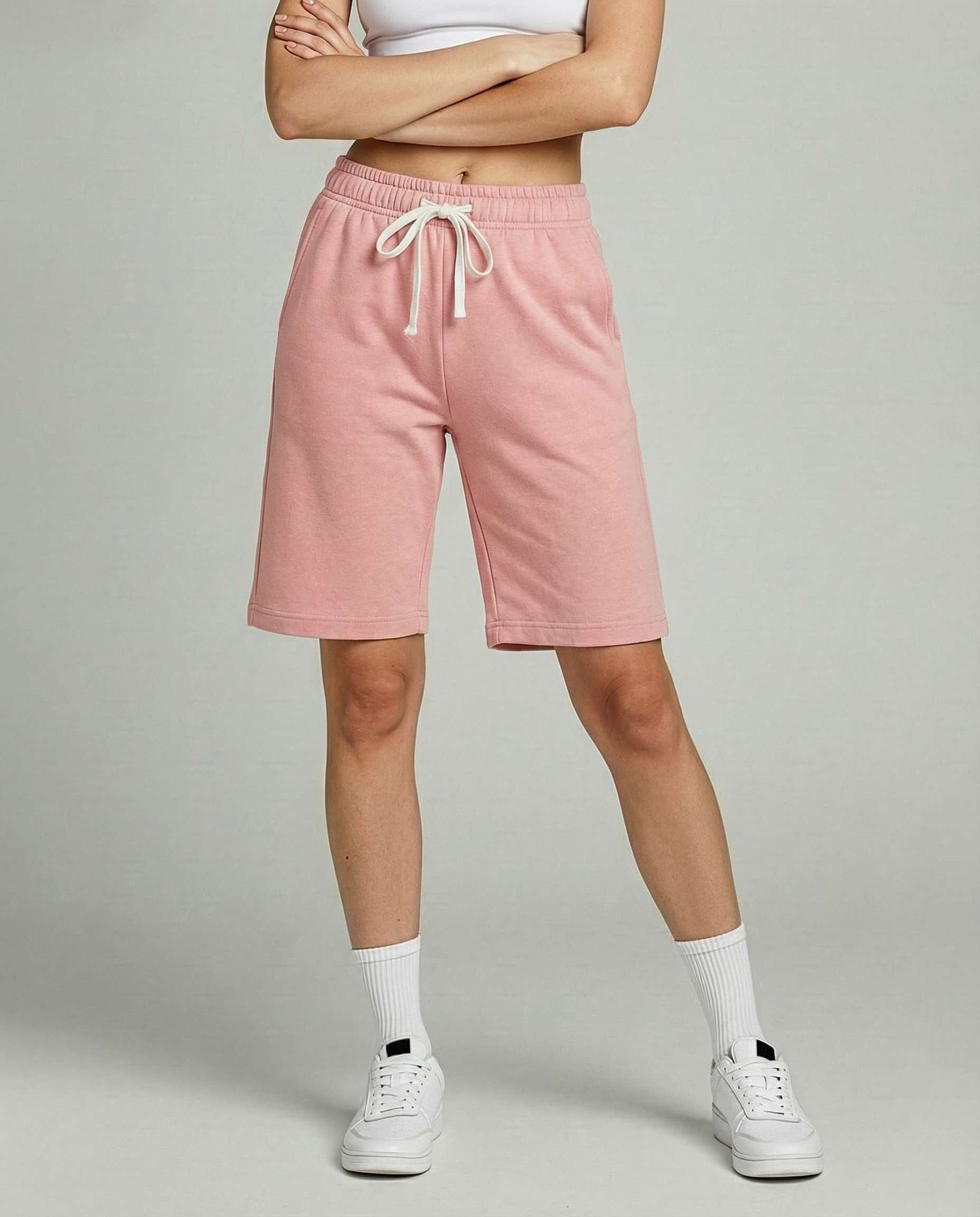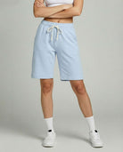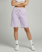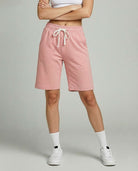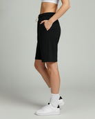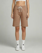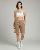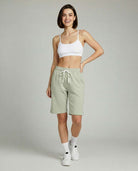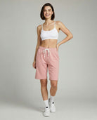 • Women's active bermuda knit long shorts with elastic waistband and adjustable drawcord for a custom fit