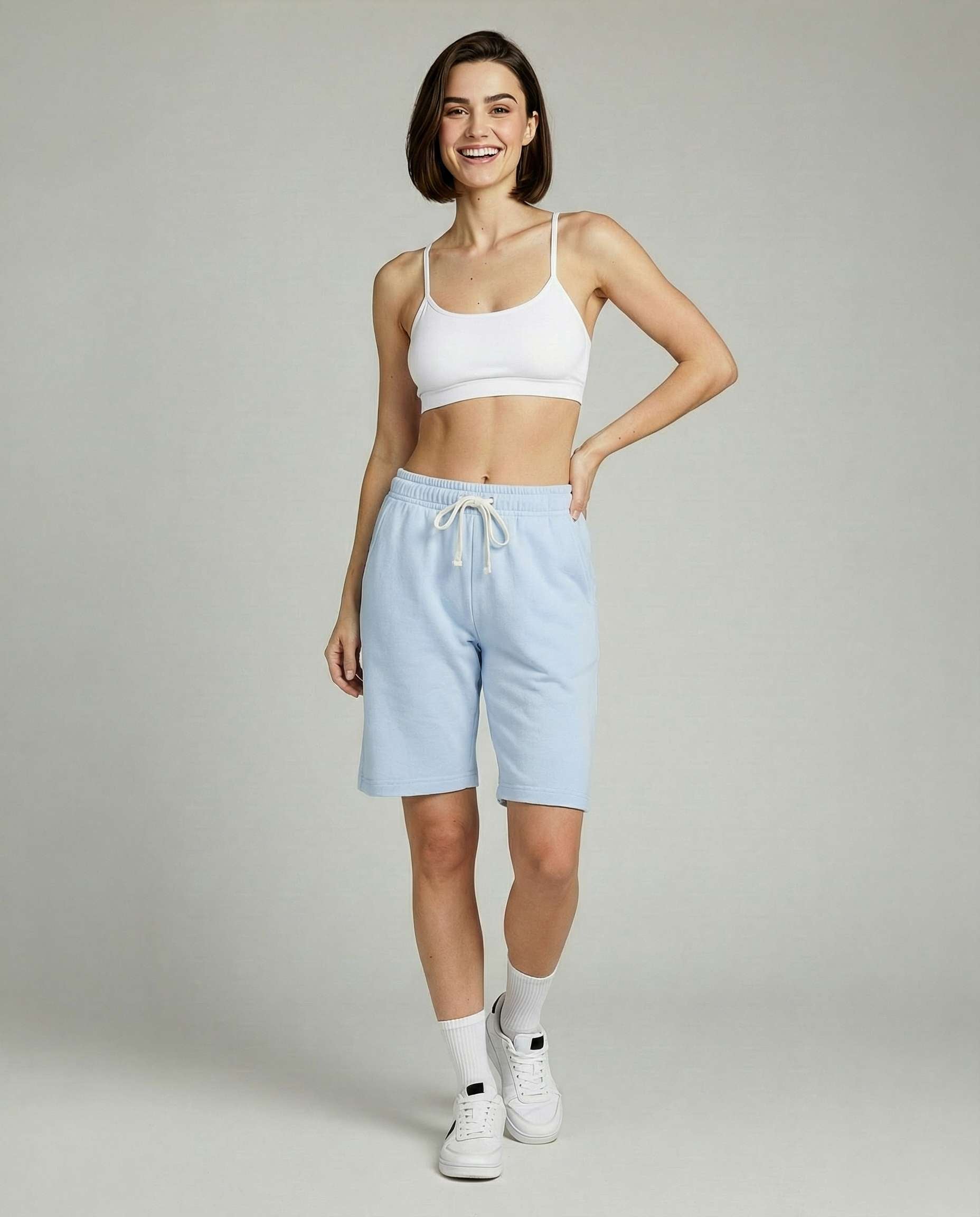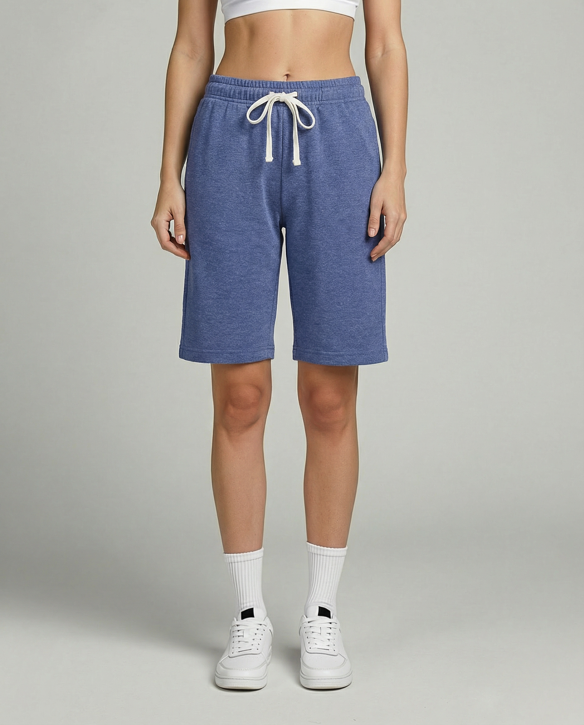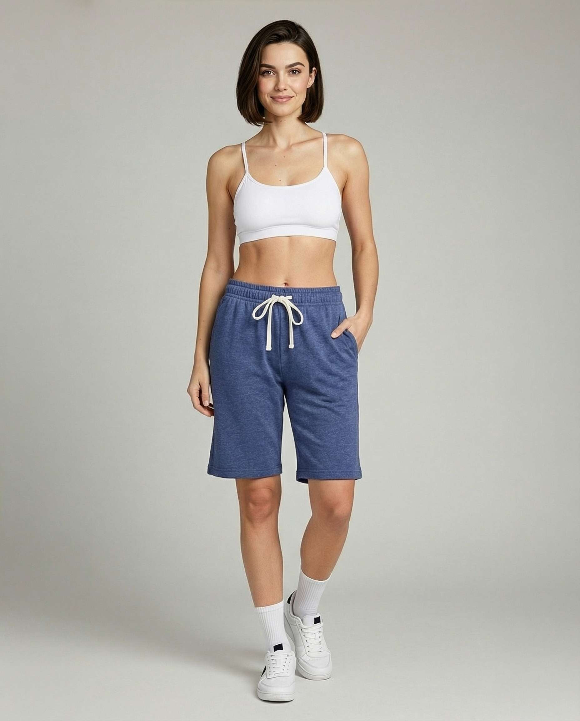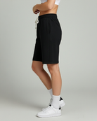 • Women's active bermuda knit long shorts with elastic waistband and adjustable drawcord for a custom fit