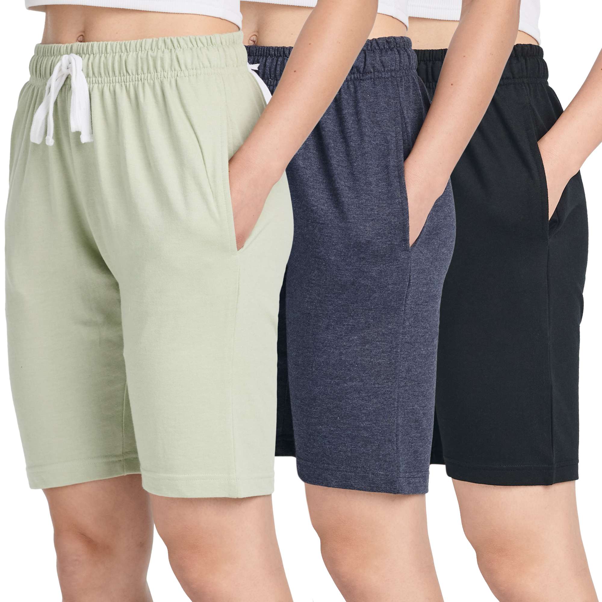 3 Pack: Womens French Terry 9" Bermuda Shorts