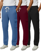 3 Pack: Mens Fleece Cargo Open Bottom Sweatpants