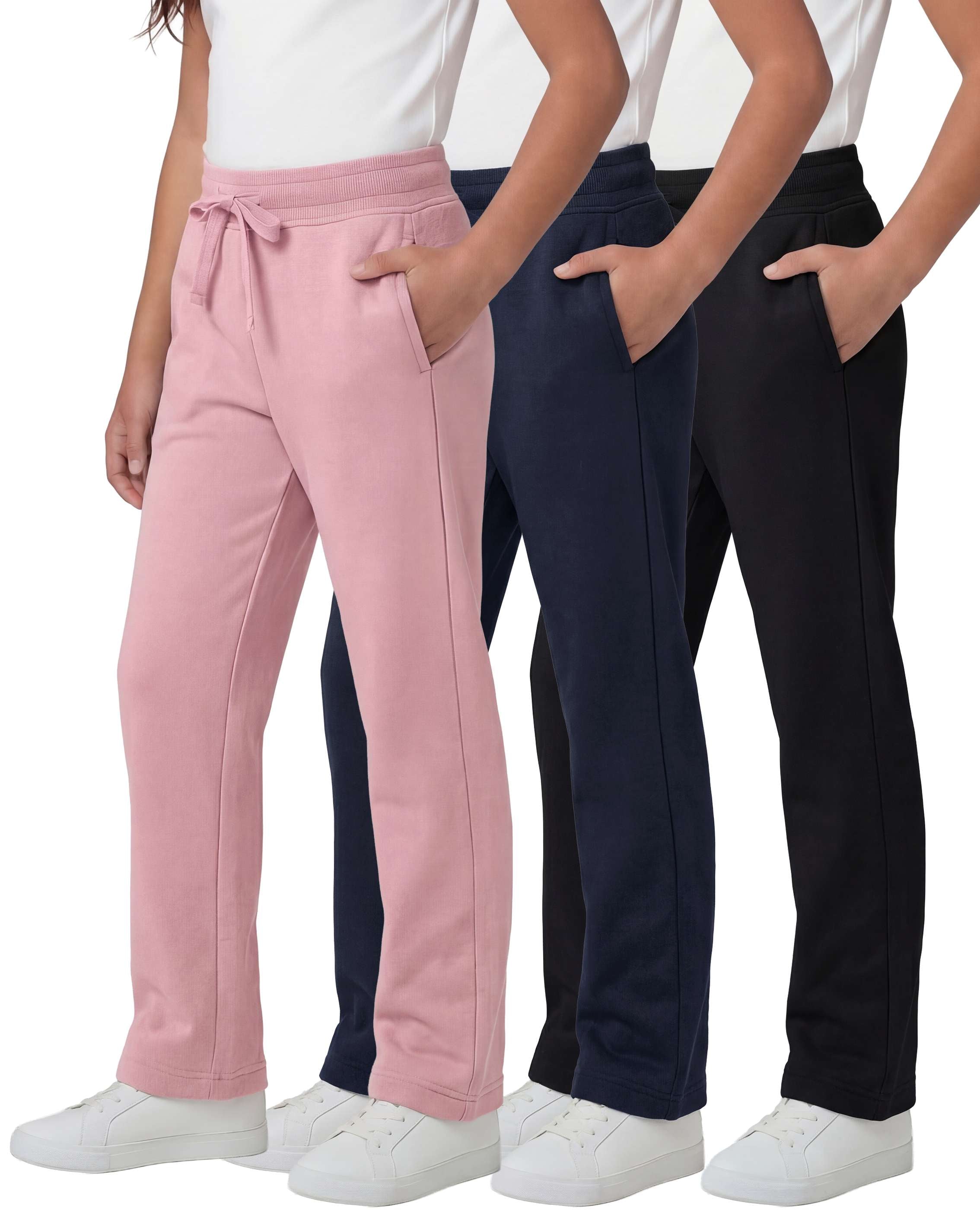 - PRODUCT FEATURES THAT STAND OUT: Our girls' fleece sweatpants come in a pack of 3, which gives you more options and takes your dollar further. They are available in a range of sizes from little kids to teenagers, making them a perfect choice for youth, teens, and juniors. These sweatpants are versatile and can be worn for a variety of activities, including jogging, running, basketball, or as casual wear.