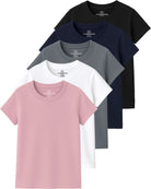 Each multipack includes a selection of solid color basics that are easy to mix and match. Whether she is at playdates, running errands with family, or spending time outdoors, these shirts move with her and stay comfortable from morning to night. The classic crew neckline and short sleeve silhouette create a timeless look that pairs effortlessly with jeans, shorts, leggings, or skirts.