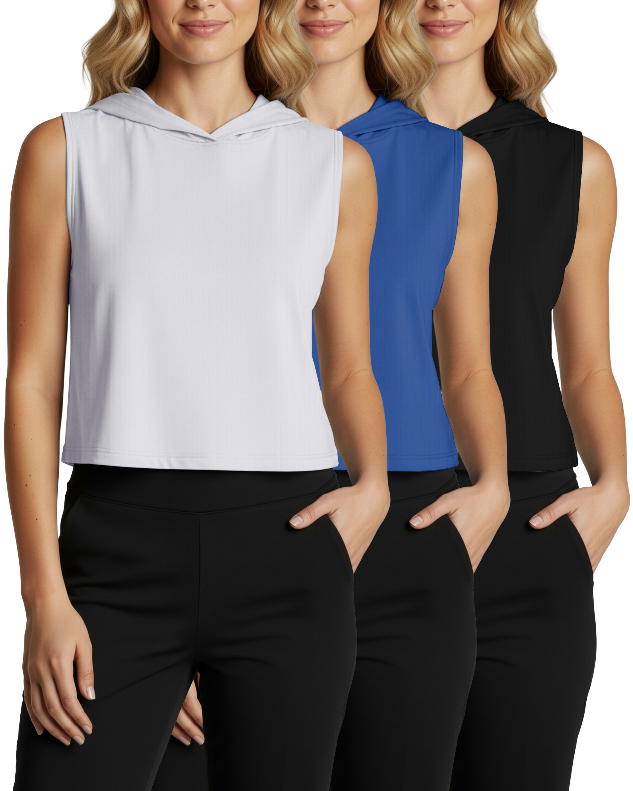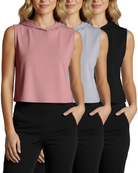 3 Pack: Women's Sleeveless Cropped Tank Top Hoodie