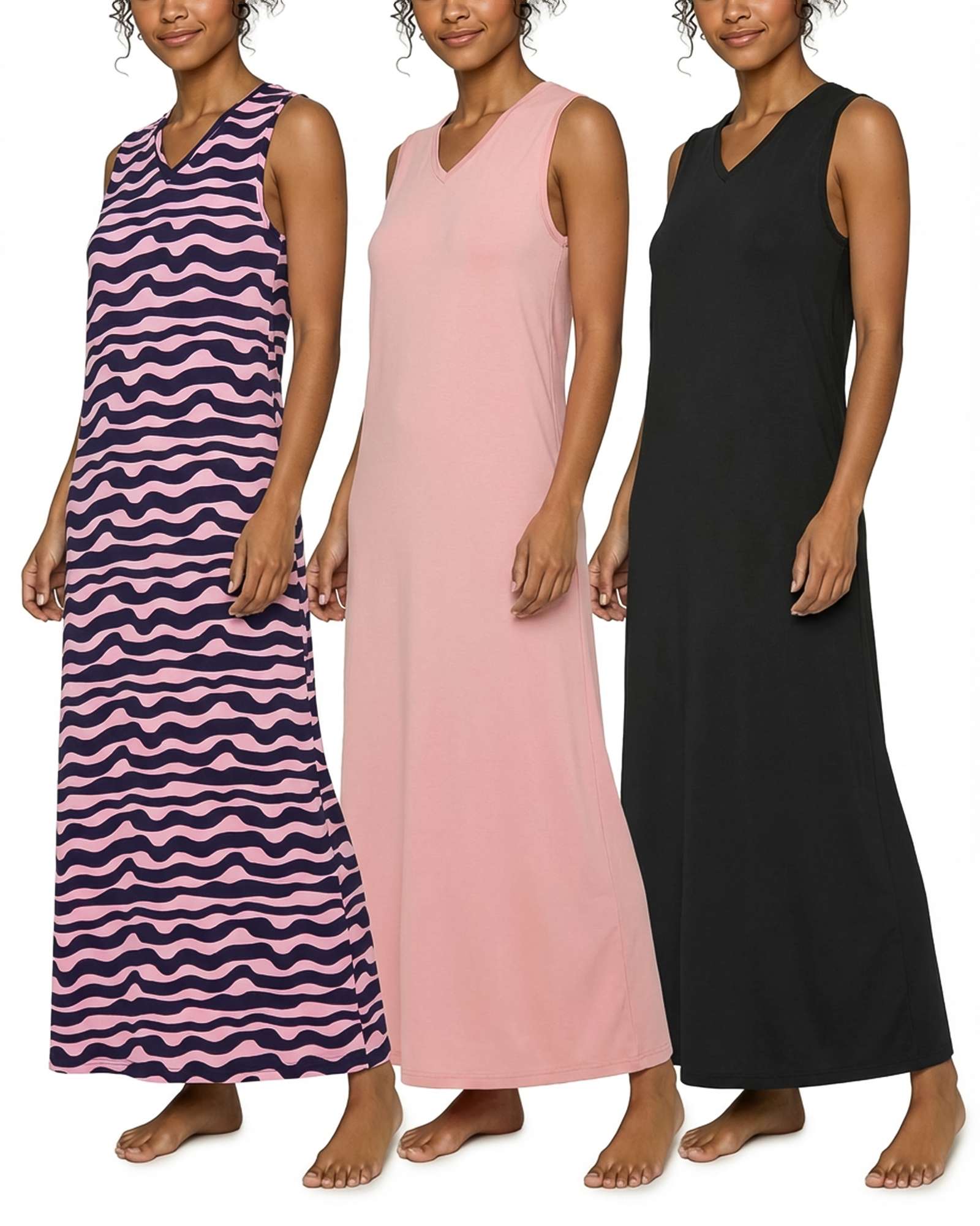 3 Pack: Women's Scoop Neck Sleeveless Nightgown