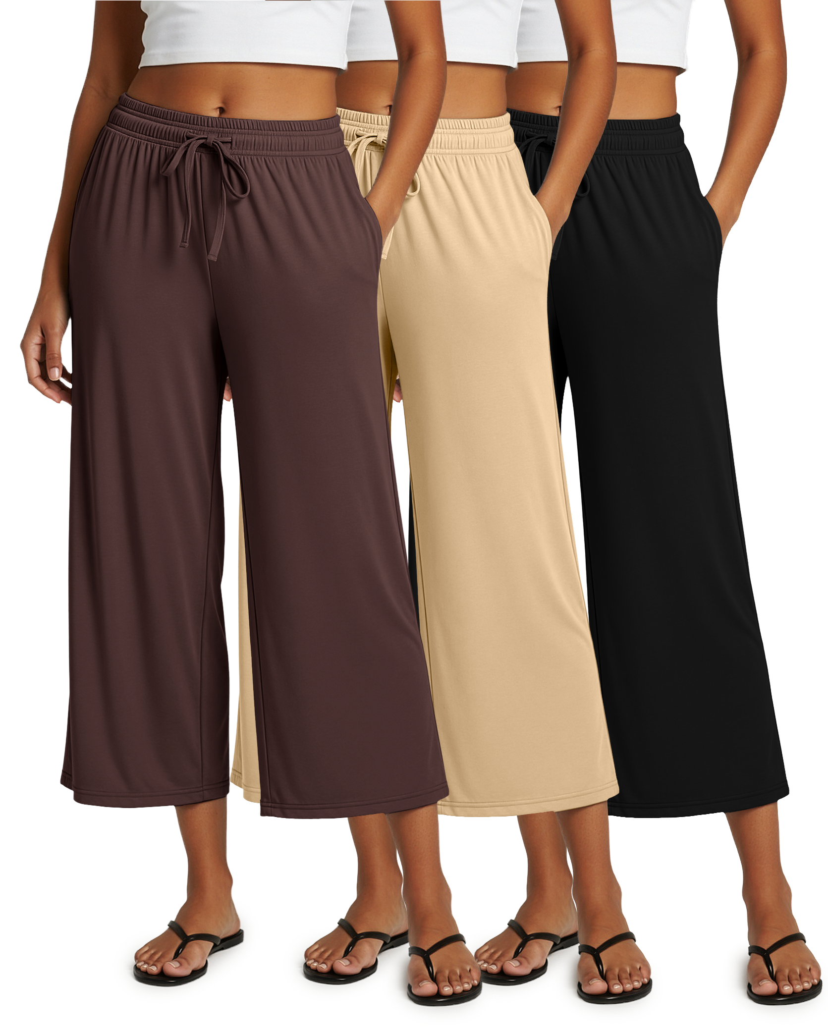 3 Pack: Women's Ultra-Soft Wide Leg Capri Pants