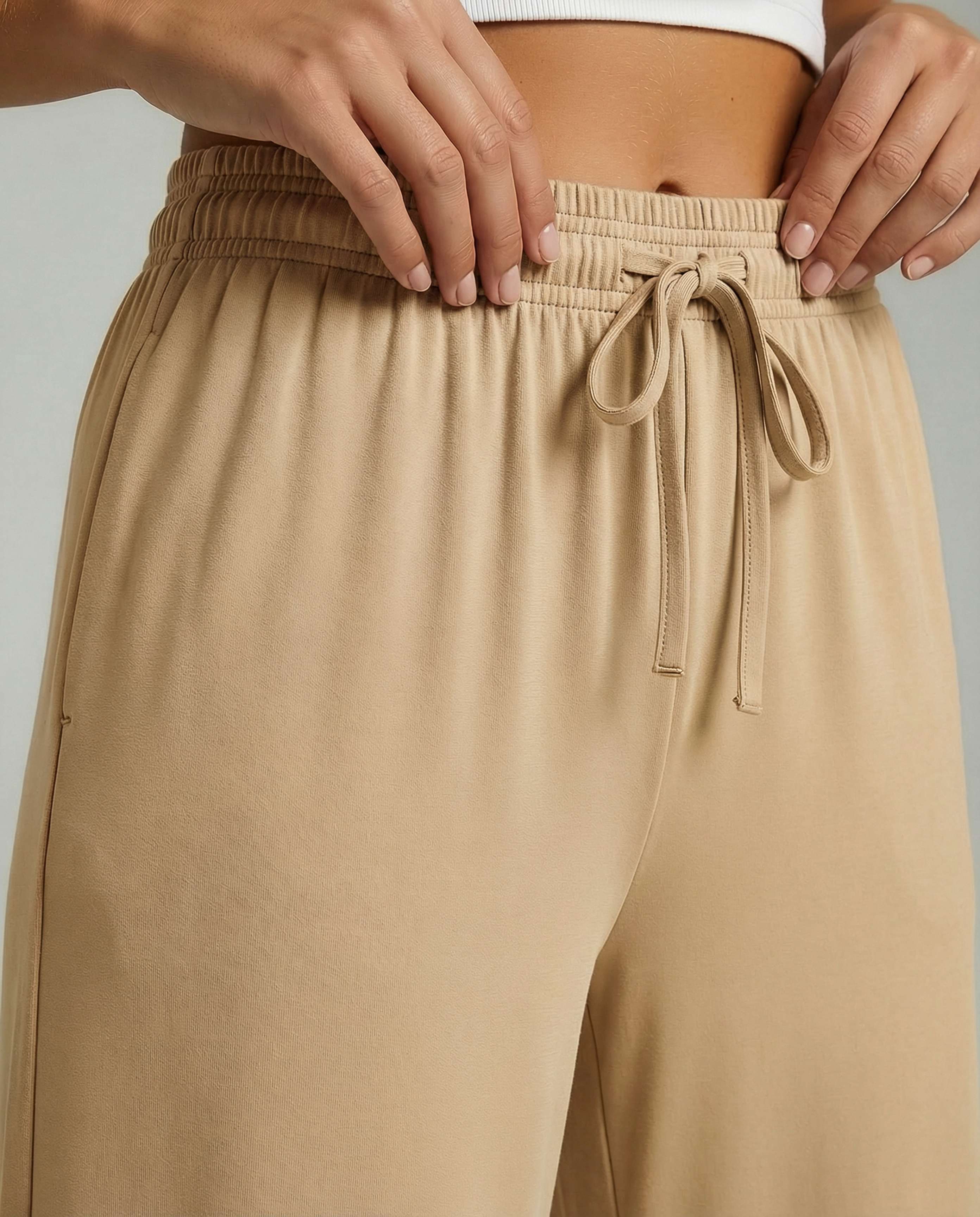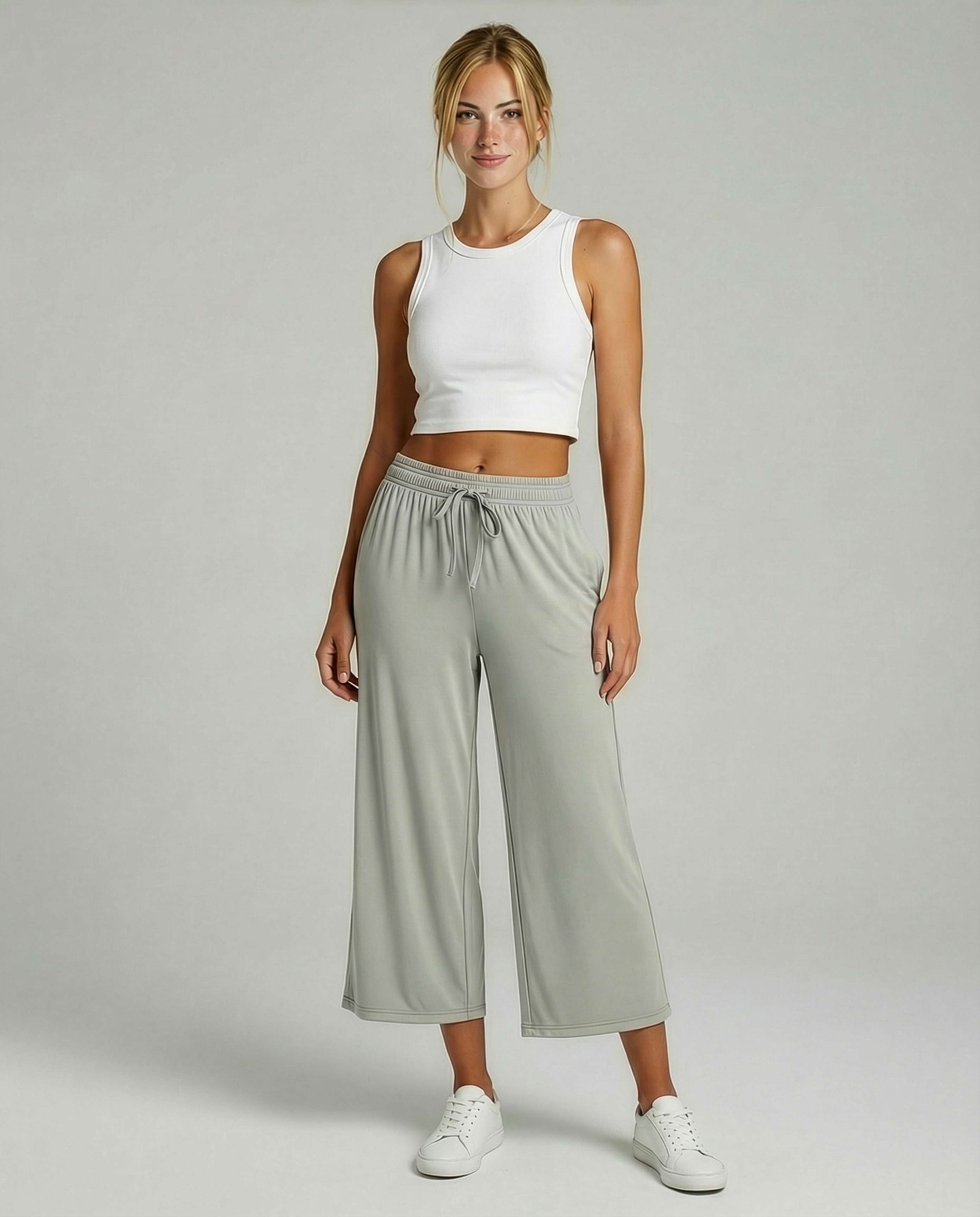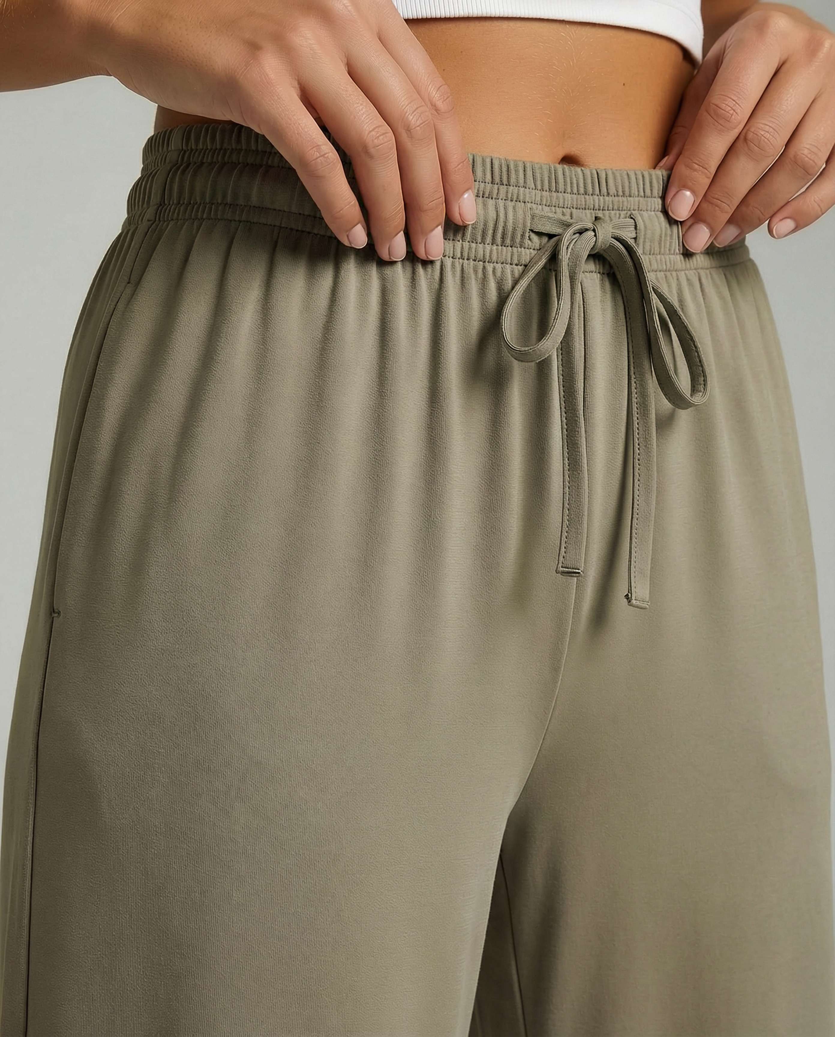- Drawstring Capris with Pockets: Loose yoga capris with an elastic waistband are comfortable and easy to pull up and down. The pockets are nice and big to carry your phone, wallet, keys, etc. Wide-leg capri sweats have a flattering shape and drape nicely from the hips to the leg. Women's capris for summer, loose capri workout pants, lounge pants capris.