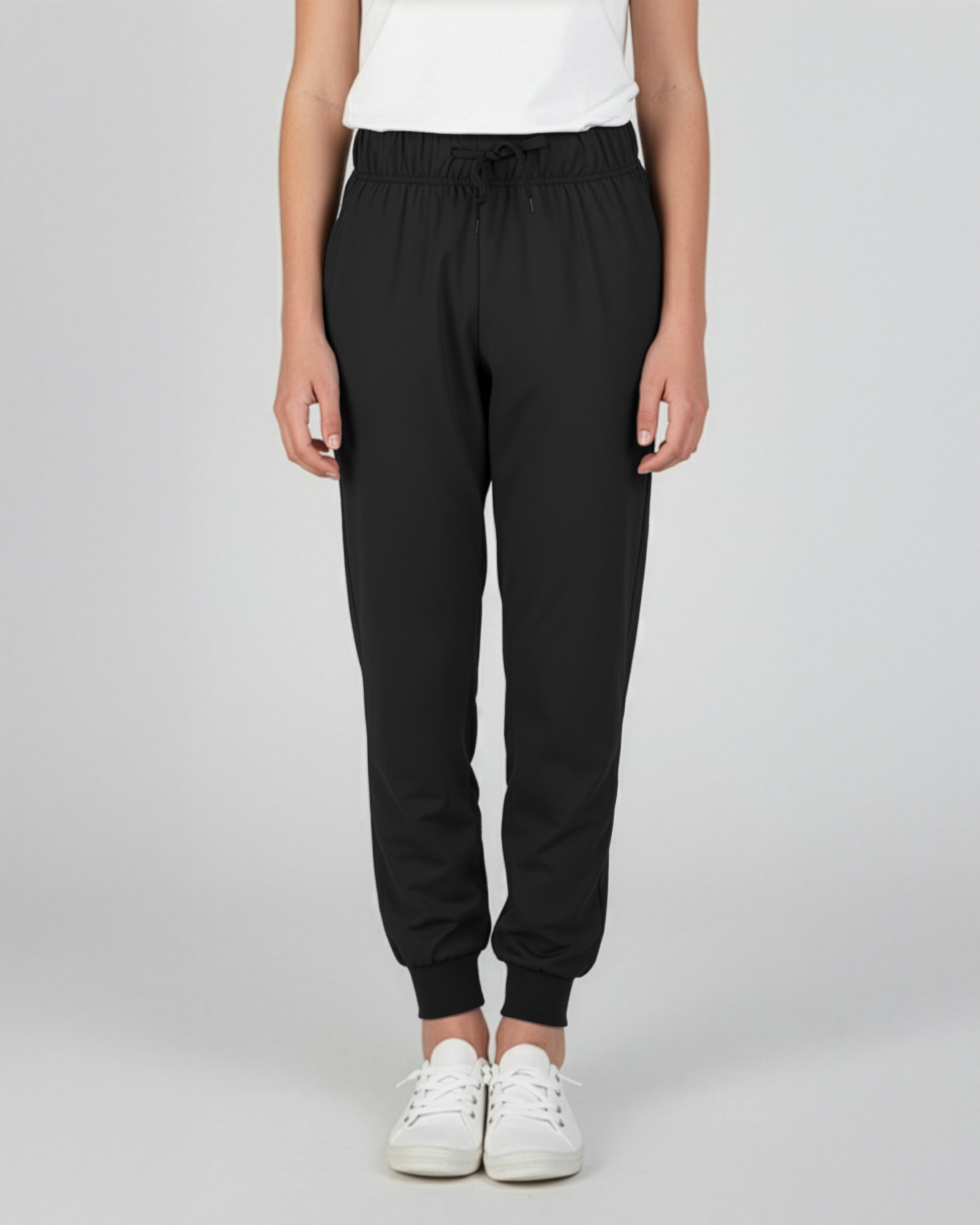 - Side pockets, drawstring waist and elastic ribbing at the cuffs